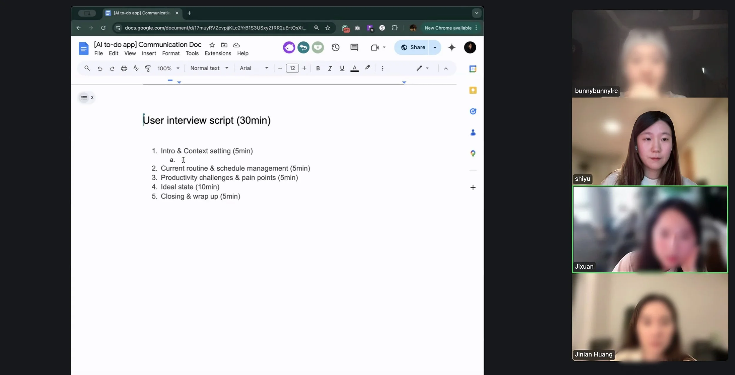 Group discussion on user interview script: