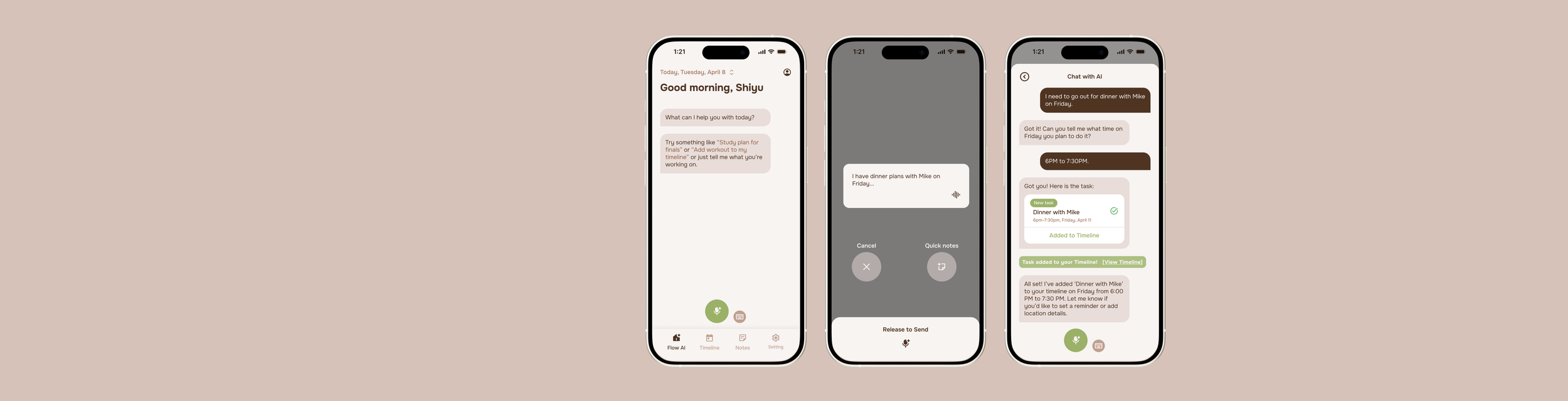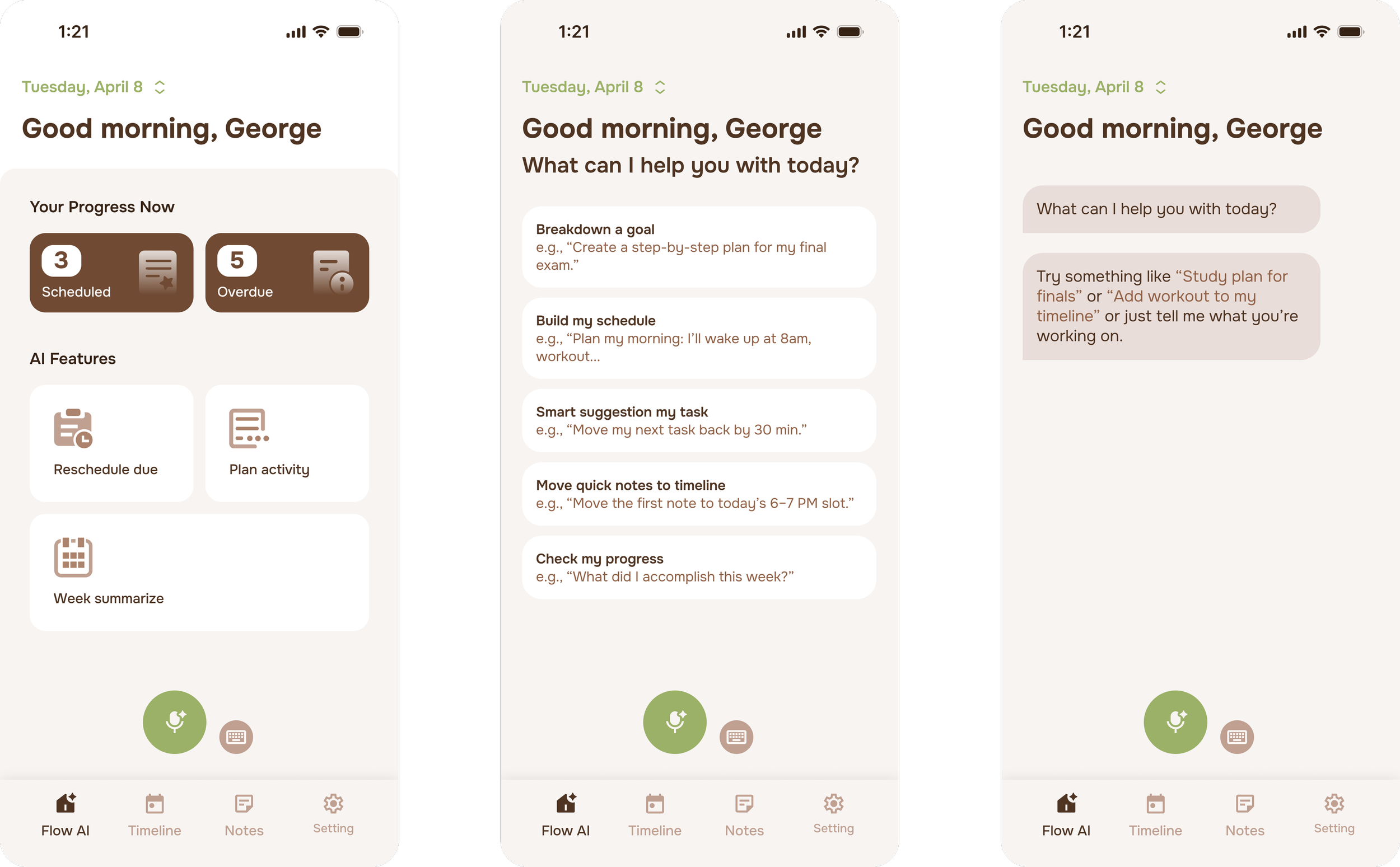Flowday supports voice input, allowing users to talk to AI about what they need.